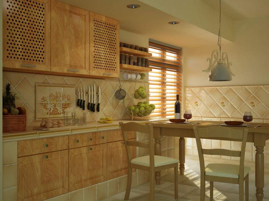 Ceramic tile is the most reliable and therefore the most popular material for decorating kitchen walls.Its strength and durability is due to a special technology of its creation - a strong material press.