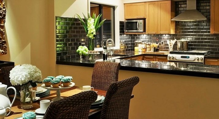 Designers are advised to create in the kitchen only one stone wall, which will be the highlight of the design of this room.In addition, experts recommend to give preference to horizontal masonry, because it will help to make the kitchen room visually wider and free. In order to bring in the dining area of comfort, it is enough to at least partially trim it with a stone of warm colors. Such a design decision will definitely be appreciated by your guests, it will help to make the kitchen very unusual and unique in its own way.