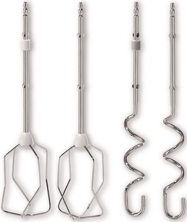 They can be in the form of a paddle and are used both for thoroughly beating and mixing products. There are special nozzles for mashed potatoes, for cocktails, for the dough. Depending on the destination, they may have a wavy shape, oval or straight. They are a basic accessory.
