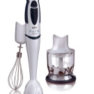 - Hand held or, as they are also called, submersible ones are used for more complex operations, for example, for cutting vegetables and fruits, beating mashed potatoes and sauces, chopping meat for minced meat. They are able to cook a dish in a variety of containers, be it a pan, a ladle or a jug. The main thing is that the container is rather deep and capacious, so that the contents do not splash and not scatter on the table during cooking.