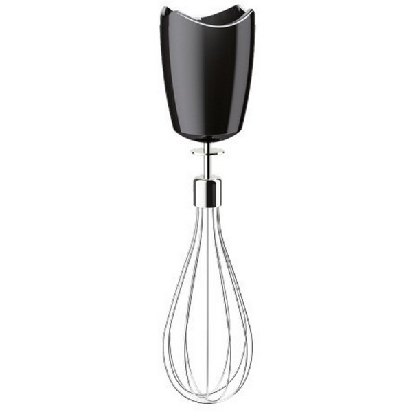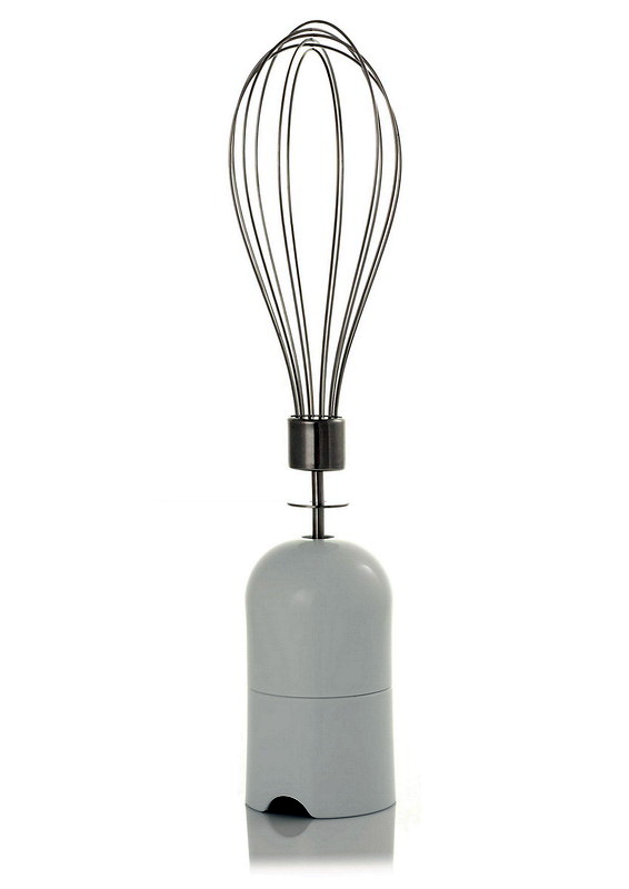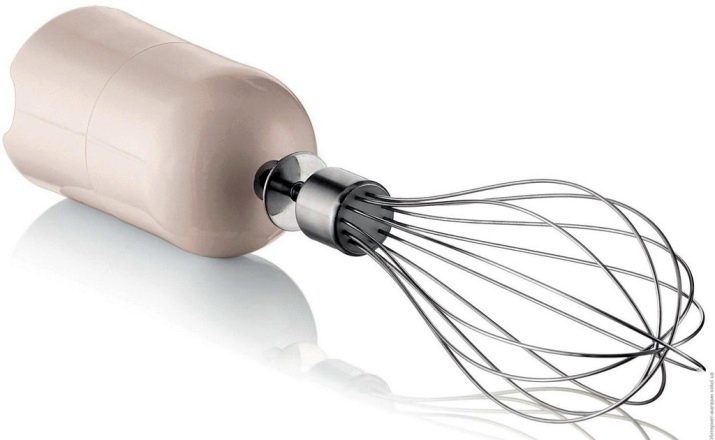 The whisk is designed to perform the function of a mixer and is used to prepare protein creams, as well as to mix shakes. Such a nozzle has, in addition, a specialized measuring cup, it is convenient to beat a variety of liquids in it. This device will help to easily knead the dough for pancakes or to please the household with a tender omelette. Stainless steel rods help chop soft fruits or vegetables and apply them to mashed potatoes.