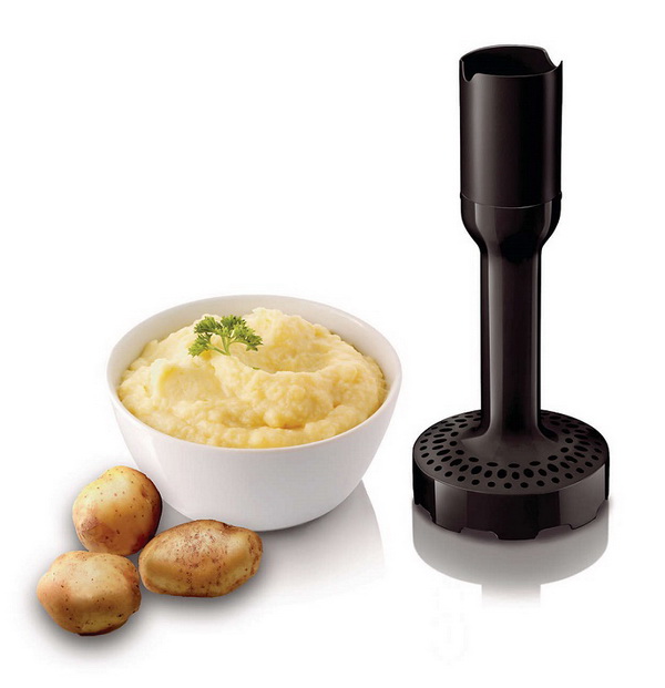 Consists of a mesh base, through which mashed potatoes, and special knives. It is made of plastic, which makes it possible to beat the potatoes in such a way that the mashed potatoes turn out to be airy, light, of a uniform consistency and without lumps.