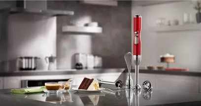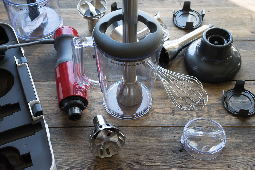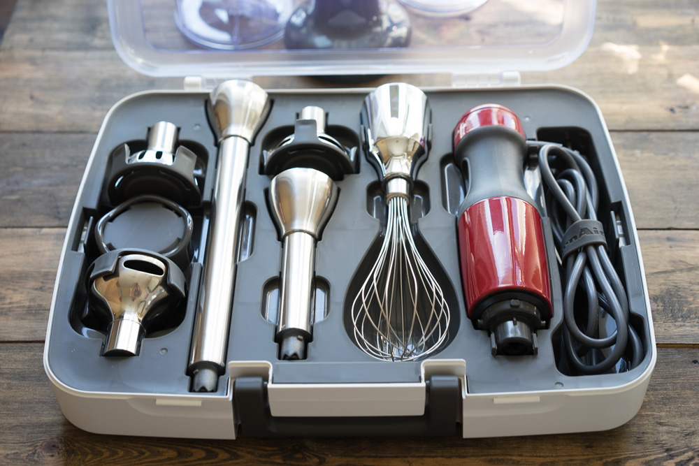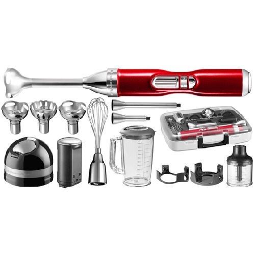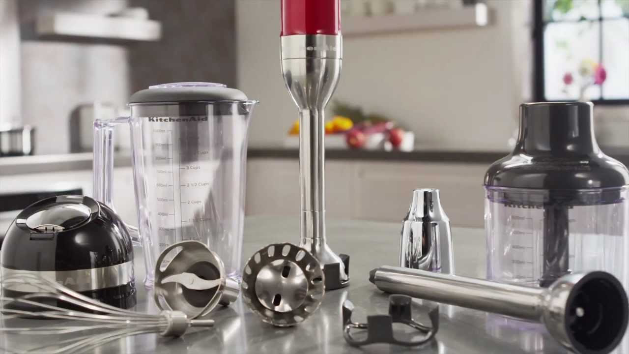The mobility of a hand-held submersible blender, the ability to use its grinding and mixing functions in any kitchenware is one of its main advantages. Change nozzles immediately expands the capabilities of the mixer. He has access to the functions of stationary blenders plus the very necessary additions. KitchenAid’s small, hand-held submersible blender has plenty of amenities and design meets the highest demands of modern design.