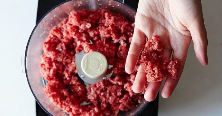 It is necessary to cut the meat smaller, free from the veins, cartilage and bones, wash and slightly dry, then the power of the blender will be enough to process it.