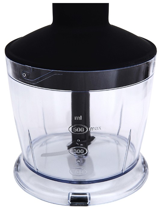 - Lid with a convenient cap that allows you to easily load into the bowl products.
