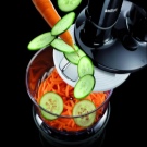 Pros are the same as the first two models. According to customers, the disadvantages include the imperfection of the functions of cutting: between the grater and the lid are often large pieces. With long work, this model overheats.