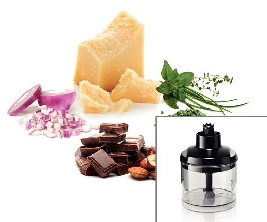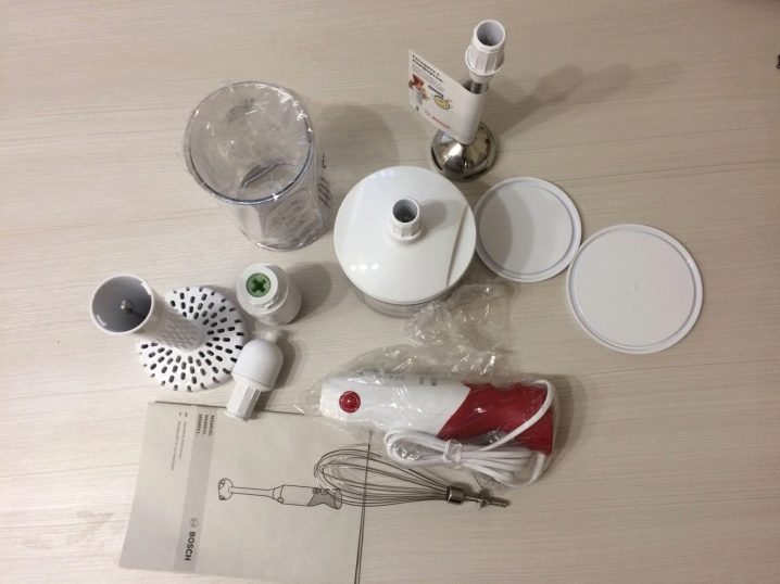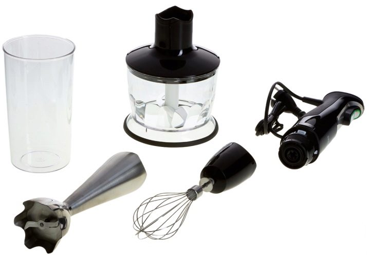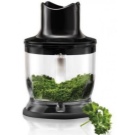 In addition to the main nozzle, the kit includes a measuring cup, whisk and chopper with a volume of 500 ml. Using the whisk, you can beat the whites. The chopper is designed for nuts, onions, garlic, herbs and hard cheese.