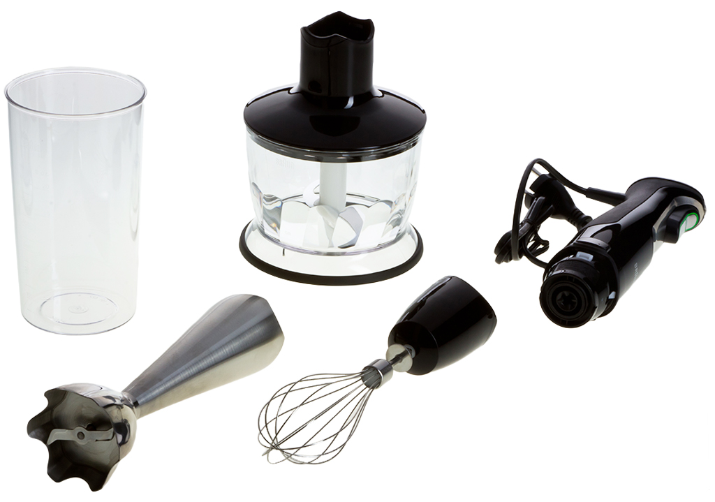 It has 2 speeds and power 600 watts in turbo mode. In addition to the blender, a whisk for beating, a beaker and a 350 ml chopper are included in the package.