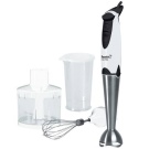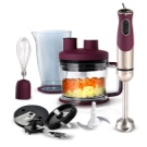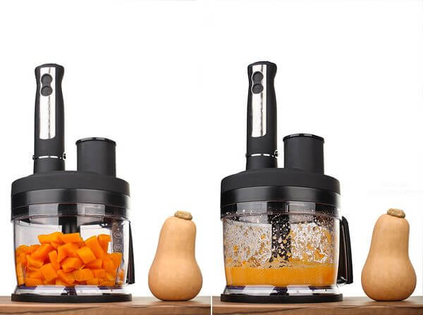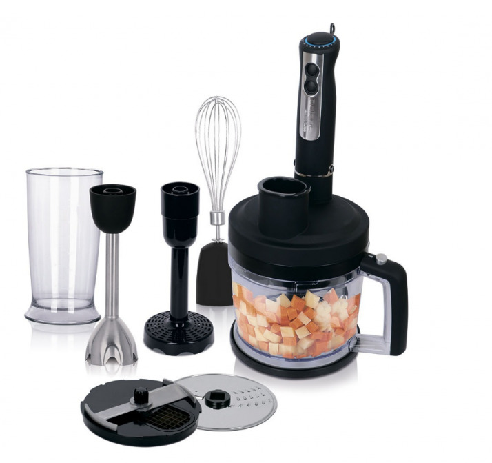 Even taking into account the fact that plastic is used in the device as the basis, the blender is distinguished by high productivity and long service life. The design is assembled without backlash, which gives a guarantee of quality work, and a convenient form of accessories and reduced work noise allow using a blender with maximum comfort. A large number of speeds makes it possible to choose the processing speed, and the increased power copes even with the hardest products when cutting into cubes.The blender Supra HBS-121 has similar characteristics.