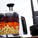 The blender with the dicing function is a device that has a special nozzle. Such a mechanism replaces the mechanical vegetable cutter and easily performs other functions. As a rule, a set also includes several graters and knives, thanks to which the device can cut fruit with a nozzle, beat milkshakes on the other, and make stuffing on the third with a meat grinder.