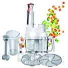 - additional nozzles: several modes of acceleration (turbo and impulse), grater, addition for shredding slices, universal nozzle (includes several shredders).