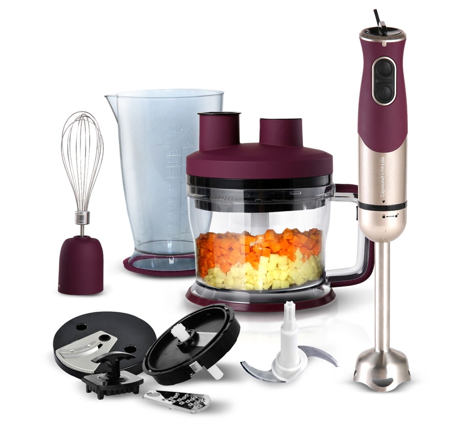 - Additional details: whisk, blades for rubbing products, accelerated mode of beating liquids, nozzle for cutting products into slices and dices.