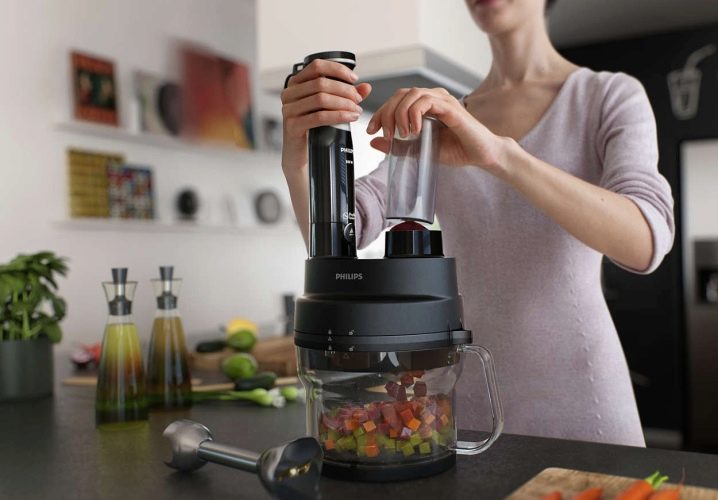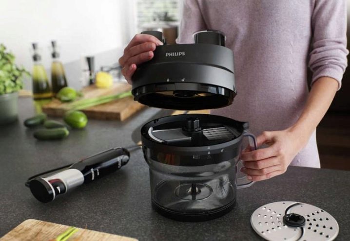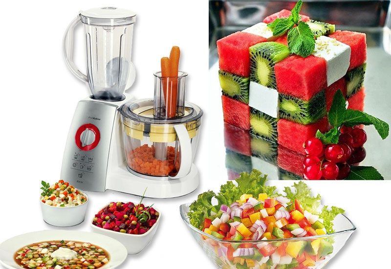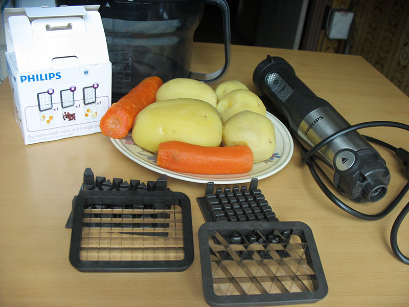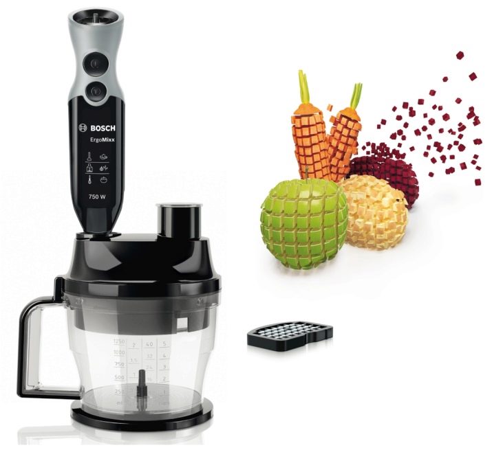In order to simplify life, popular manufacturers, both foreign and domestic, produce ready-made assemblies of blenders with a nozzle for cutting vegetables in cubes. Some models are presented as universal.