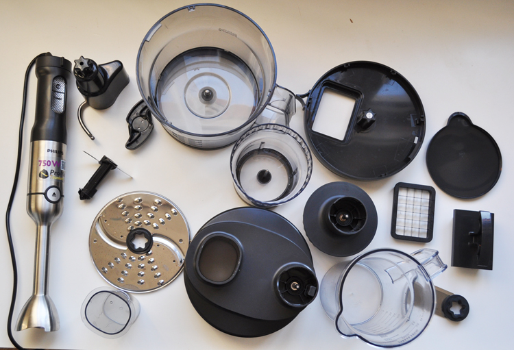 - plastic - easier and more economical to use, but this is where its advantages end. The plastic in the base makes it less quality, and its service life is not as big as we would like. With daily use, the knife, which cuts food, quickly becomes thinner. And the plastic parts are washable and can be damaged. In addition, the plastic nozzle, which cuts vegetables in cubes, can not be used with hot foods;
