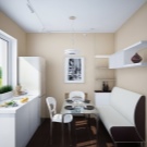 For the selection of the dining group in a small-sized kitchenette, you should look at the modular sofas - their individual elements, which you can combine, move, divide, extend, hide or swap at your discretion, allow you to independently change the shape, size and configuration of such models, significantly modernizing and significantly optimizing the usually insignificant space of the kitchen area.