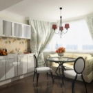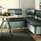 But all these shortcomings are devoid of modern upholstery artificial fabrics - a pleasant soft and hypoallergenic chenille, or a flock with a resistant teflon coating, called "anti-claw", or microfiber, impregnated with special solutions,imparting resistance to pollution and penetration of moisture and undesirable aromas, or variegated colorful and extremely durable polyester blend fabric. However, the surest solution for fabric upholstery in the kitchen is the use of removable covers that are easily erased and replaced without disturbing the integrity of the sofa’s construction.