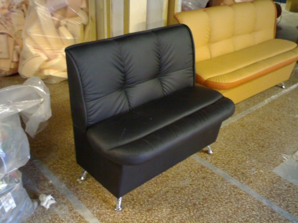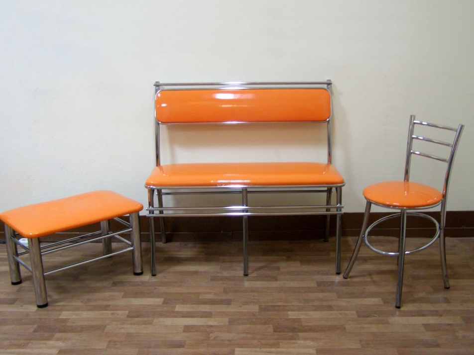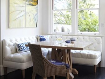 They make small sofas for the kitchen of various materials - solid wood, MDF boards, metal and durable plastic. Seats and backs make hard, soft or combined.