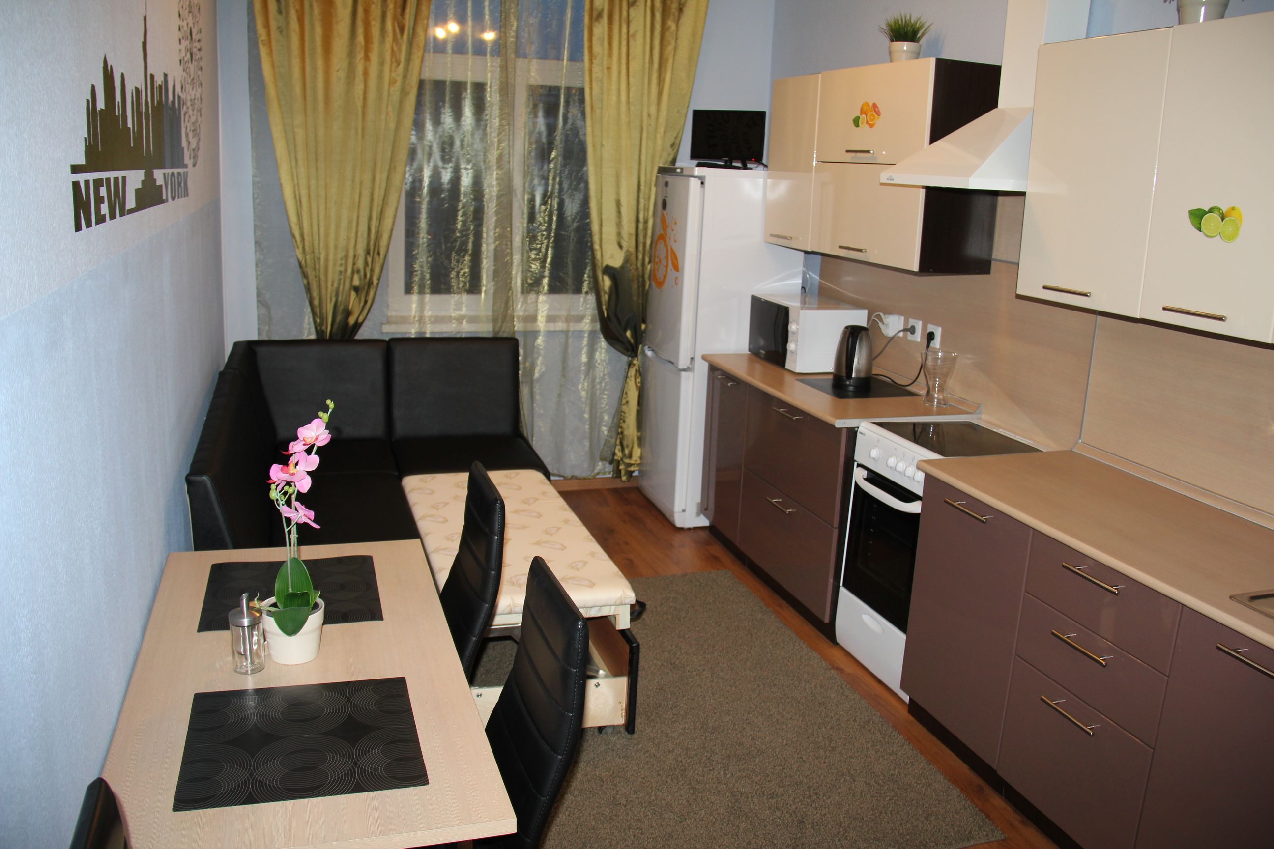 - compliance of the shape, material and color of the sofa with the design of the kitchen.