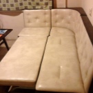 - French cot. Very spacious berth. Folds up quite simply - you need to pull the seat up and over, and then put the resulting structure on the metal legs. The main disadvantage here is the absence of a storage box.
