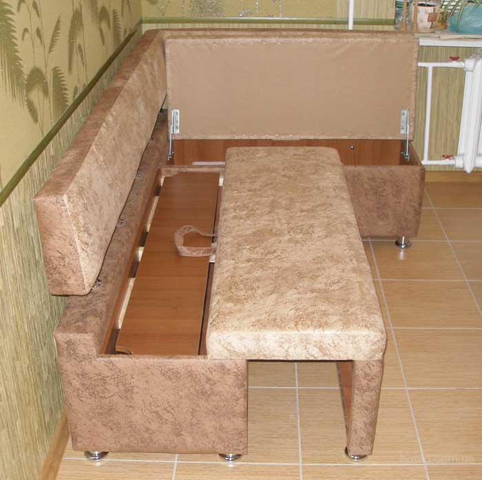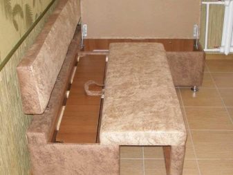 Corner sofas with drawers help to keep everything neat and not to create a mess in the kitchen. Well, if the boxes open up - then they do not interfere with the table.