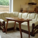 Another option for lovers of classics - a massive model of the kitchen corner called "Turin". The corner will be a great decoration of a large kitchen, made in the style of a classic. The sofa is made with a solid base (a combination of wood and chipboard), thanks to which it is stable and has a spacious niche where many kitchen accessories can fit.