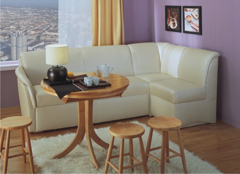 But in a small apartment there is very little space in the kitchen, and the usual separate corner where you could relax or receive guests will definitely not fit there, but a way out can be found by purchasing a soft corner in the kitchen. This will save space, because this model will take up much less space than a standard sofa would occupy.