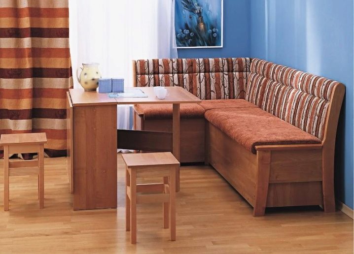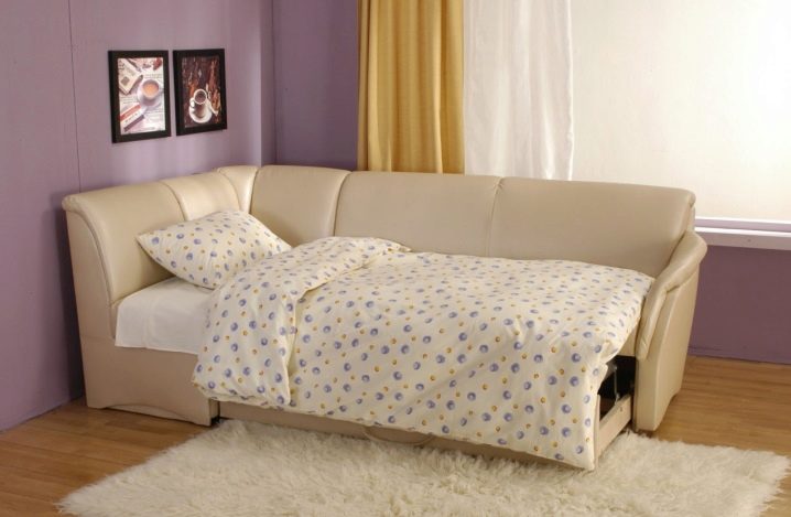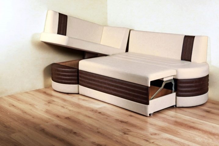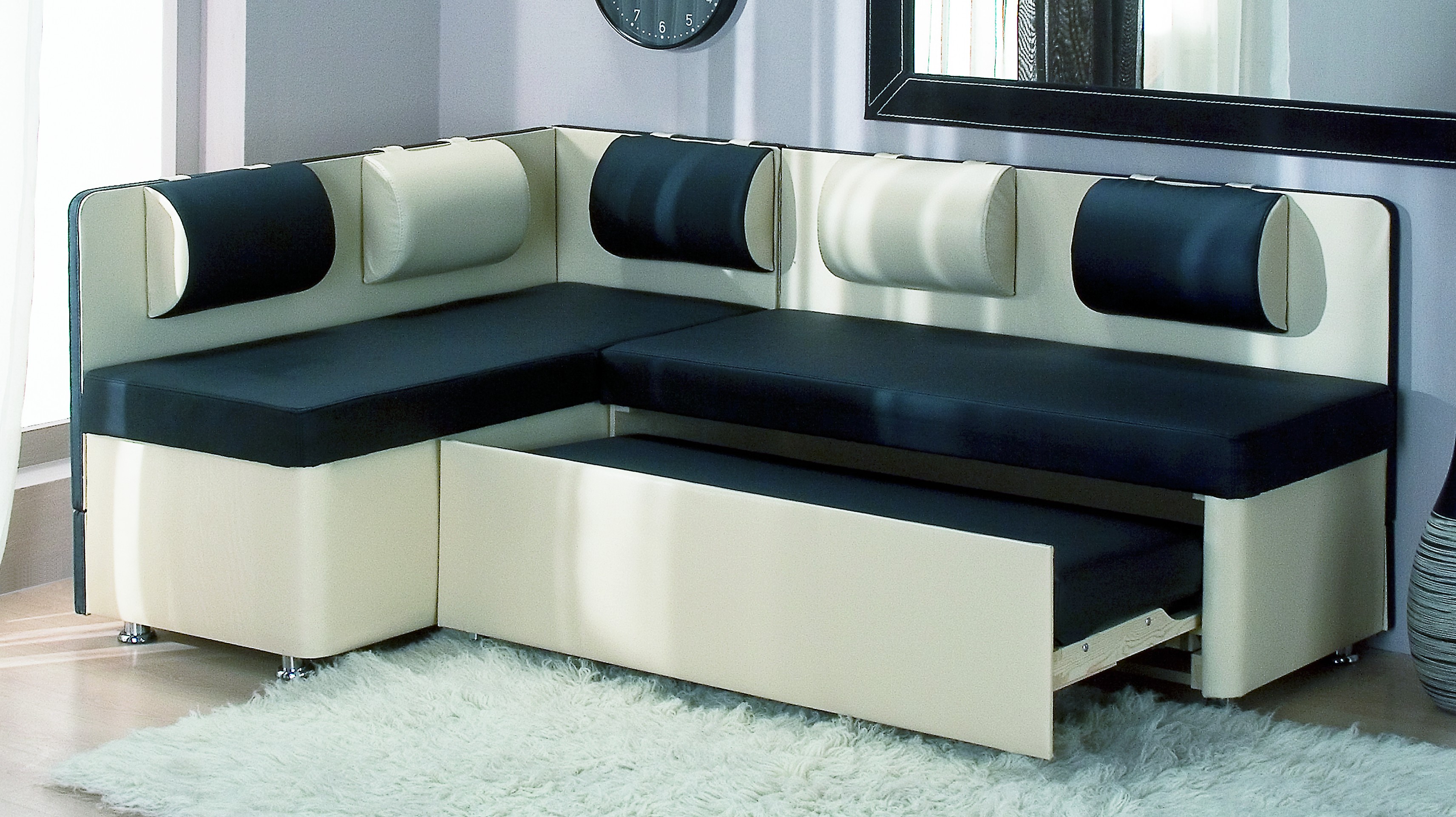 If we talk about the shortcomings of the described design, then they can include a small width of the seat (from 40 to 60 cm). It is clear that the angle has such dimensions in order to save kitchen space, but when it comes to a sofa bed, the width of the bed should be at least 70 cm. In this case, the manufacturers go out of position, making a folding design, so that as a result the desired width is still achieved.