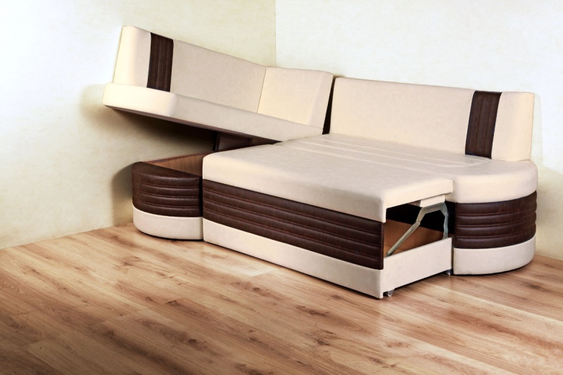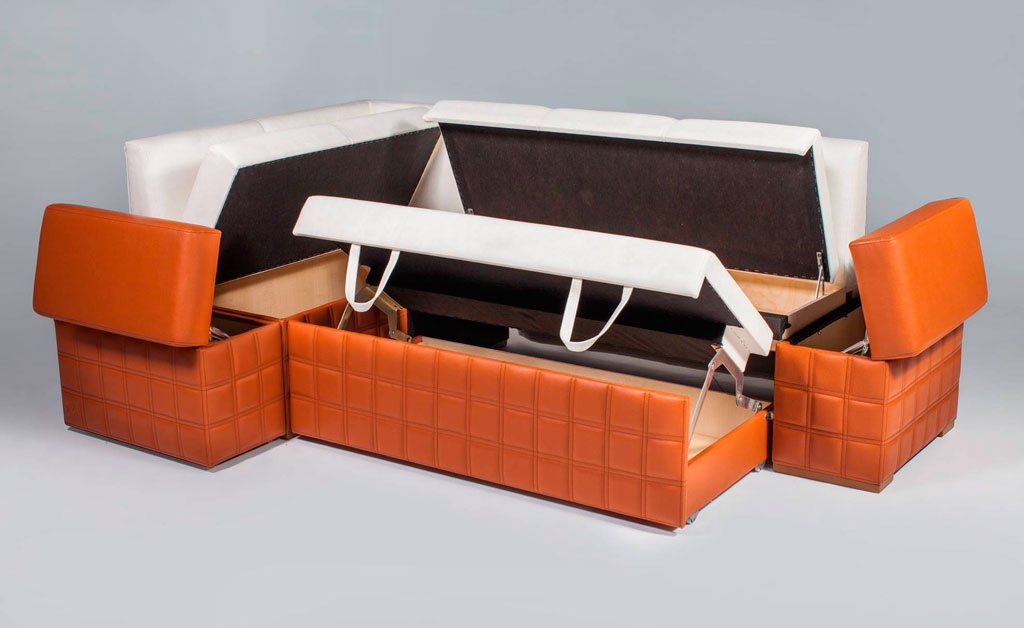 - Such sofas are multifunctional. - here you can sit and use storage space and sleep. If you are the owner of a small apartment and a cramped kitchen, such a corner will be a real find for you.