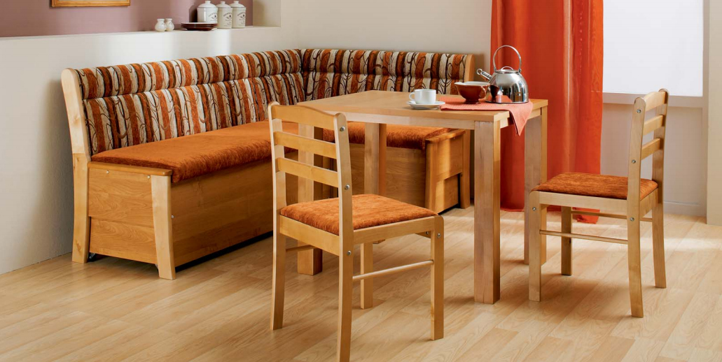 - But the most important thing is that the kitchen corner will significantly save kitchen space. He does not interfere in the kitchen at all, it cannot even be compared with chairs that can be hooked every now and then or they just get confused under their feet and interfere with movement. So for a small space, a soft corner with a sleeping place is a huge plus.