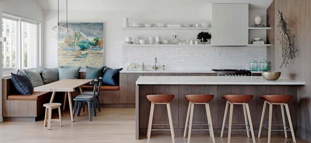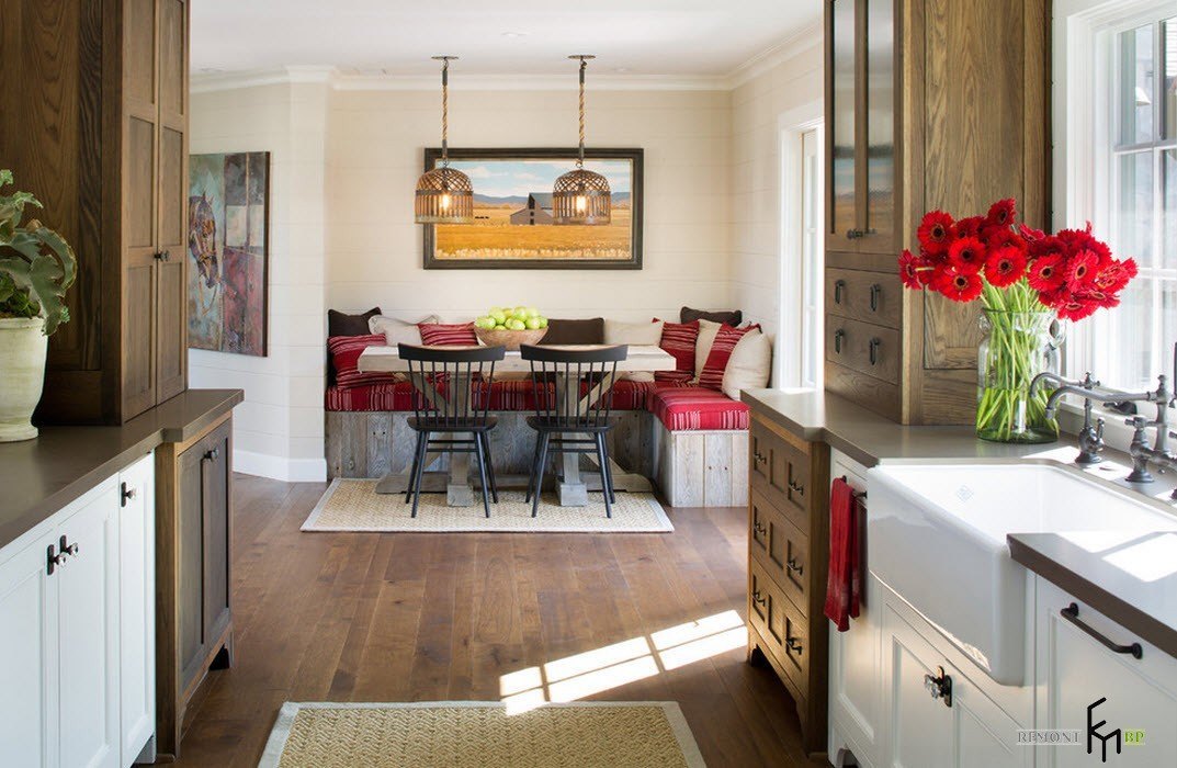 The design of the corner should be in harmony with the interior of the kitchen, so do not be in a hurry to purchase the luxurious model of the shiny sofa that you like, which is decorated with embroidery and rhinestones. Remember, wasn’t your kitchen done in a rustic style? Although, if there is an opportunity to create a fusion style on it - then take what you liked so much.