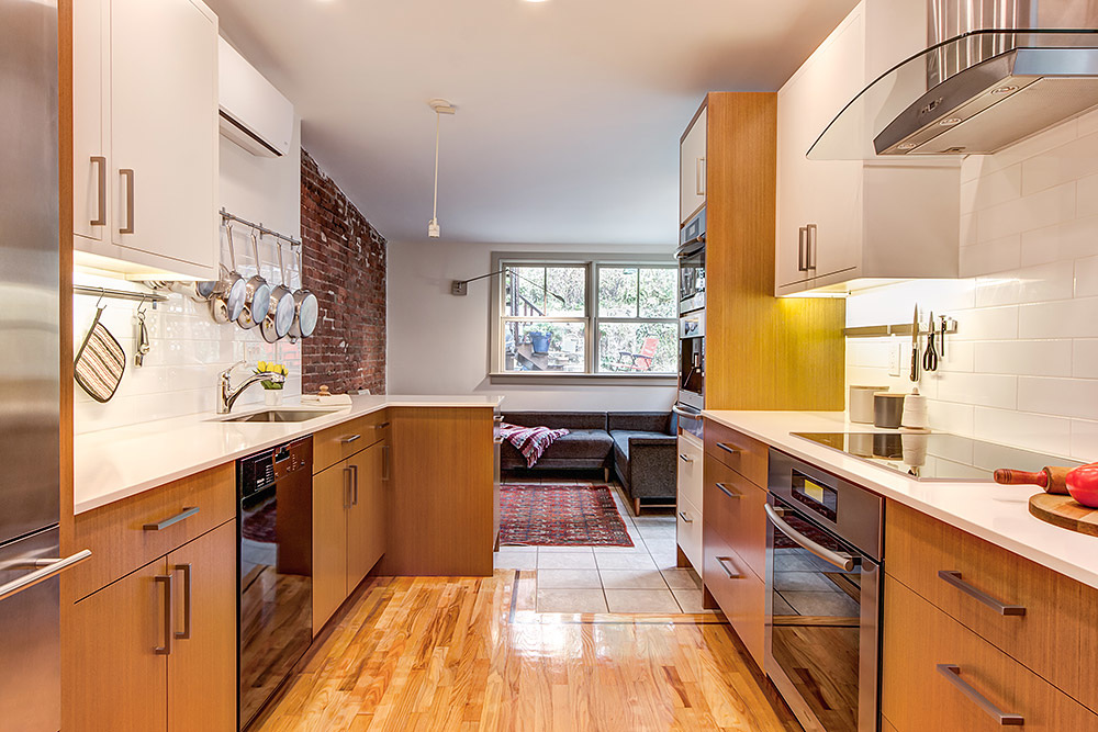 But if the kitchen is quite spacious, the sofa will look great and not near the wall itself. In this case, it can be used as a delimiter of zones, for example, cooking and dining. If so, then the “face” of the sofa should look at the dining area, and its back should be towards the cooking area.
