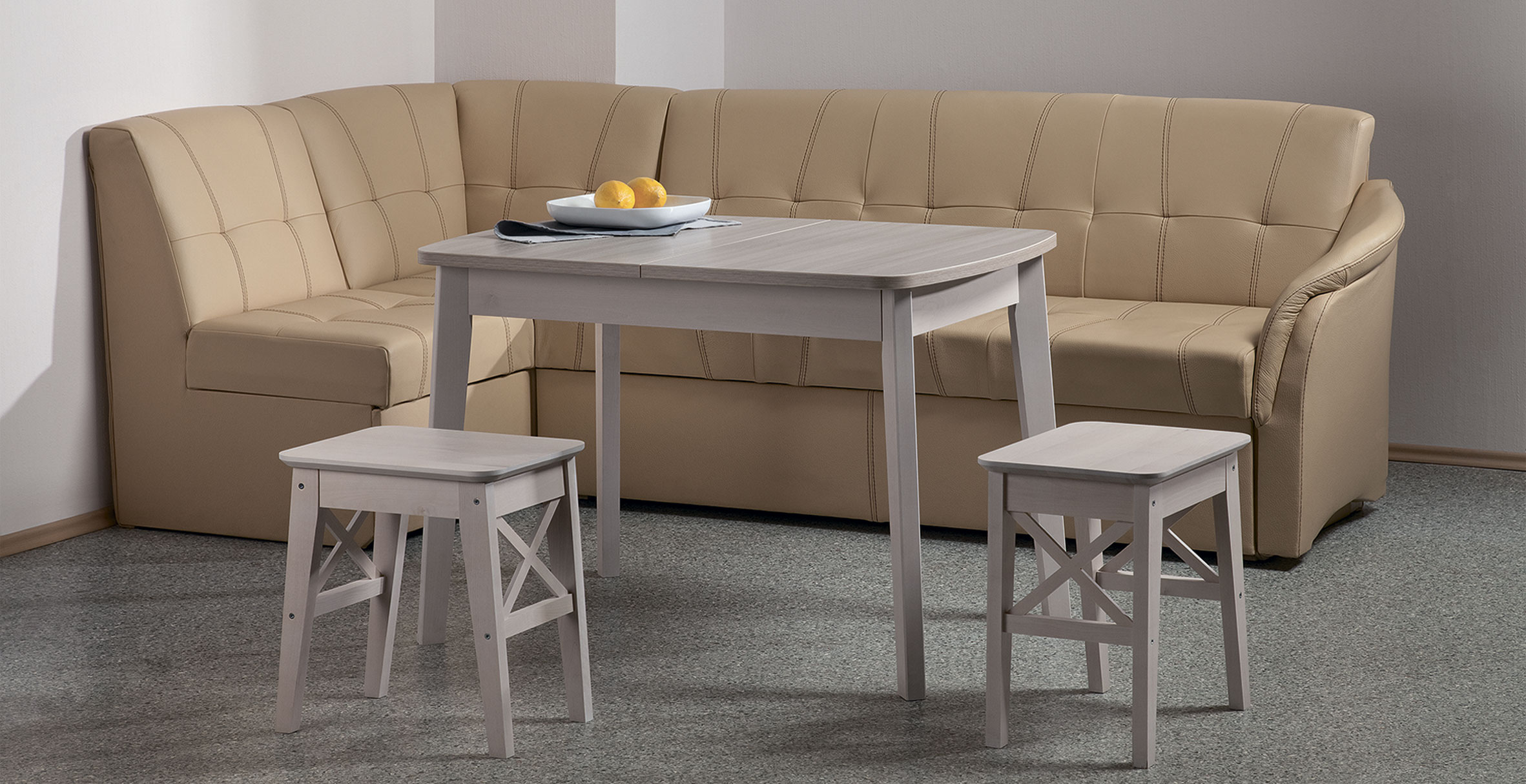 “Domino” is a model of a kitchen corner with a berth, the advantage of which is a double-sided assembly. The strong and strong framework has high operational qualities. The material for the manufacture of the frame (chipboard) has high wear resistance, and therefore the angle is reliable and will last a long time.