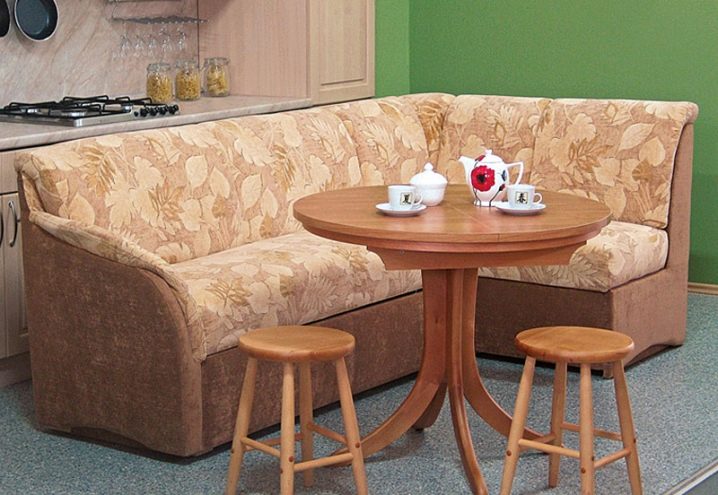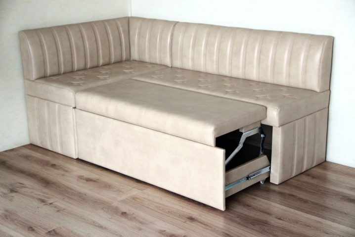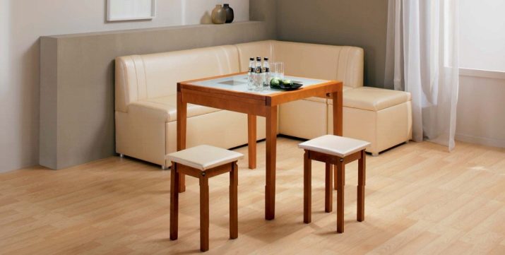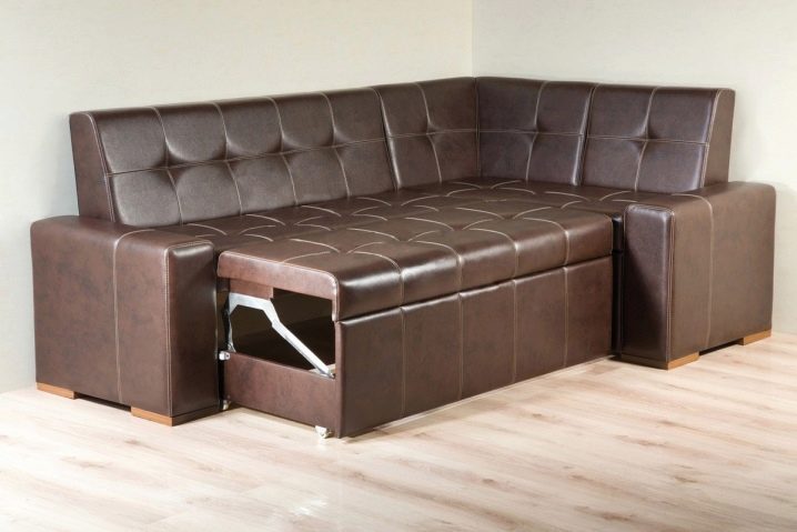 If the sofa has additional features, then for a kitchen with a small size it will be a real boon. After all, with the help of many options, the kitchen area is significantly saved, and very important problems for this room are solved.