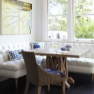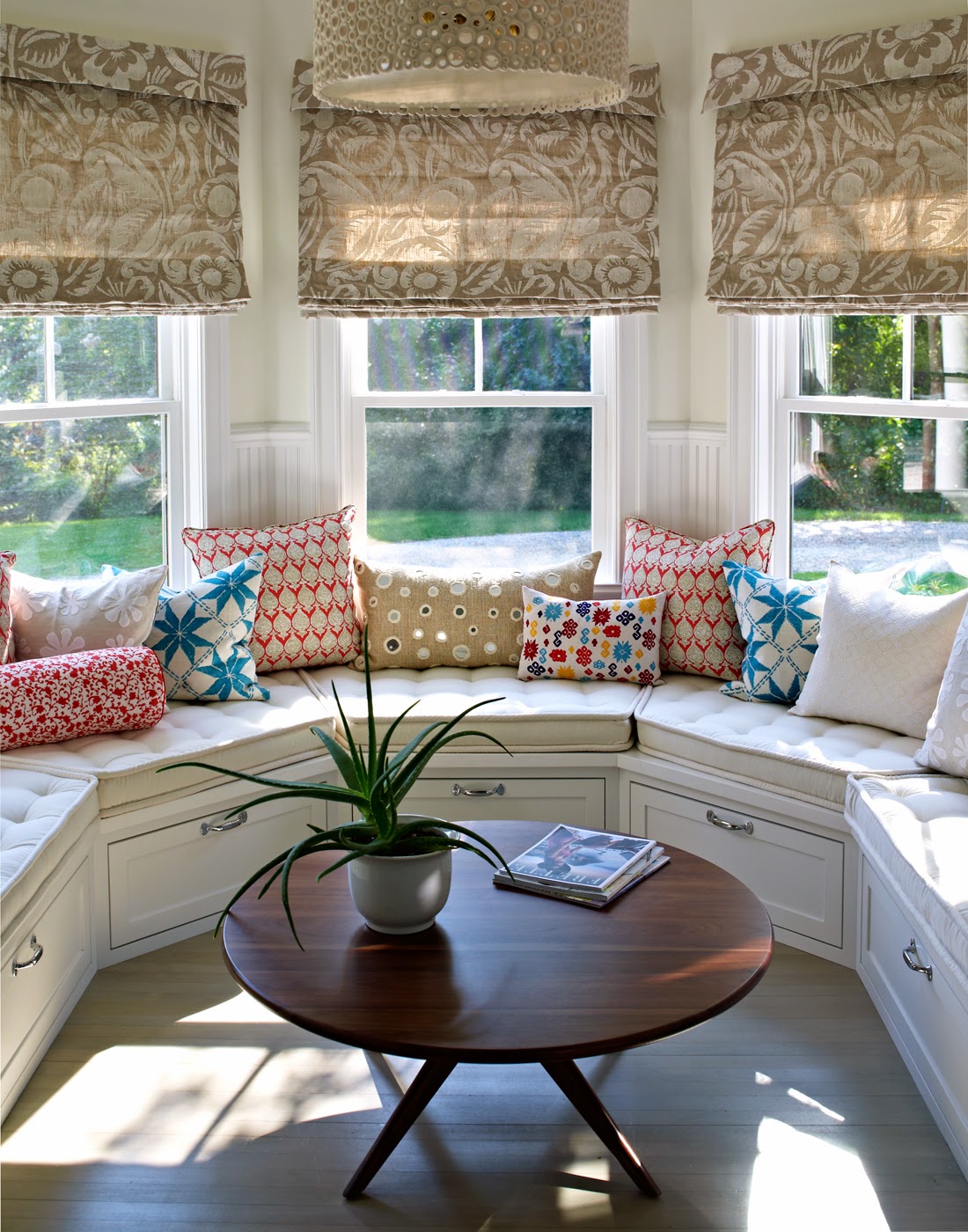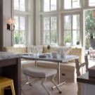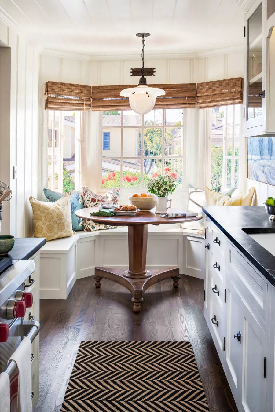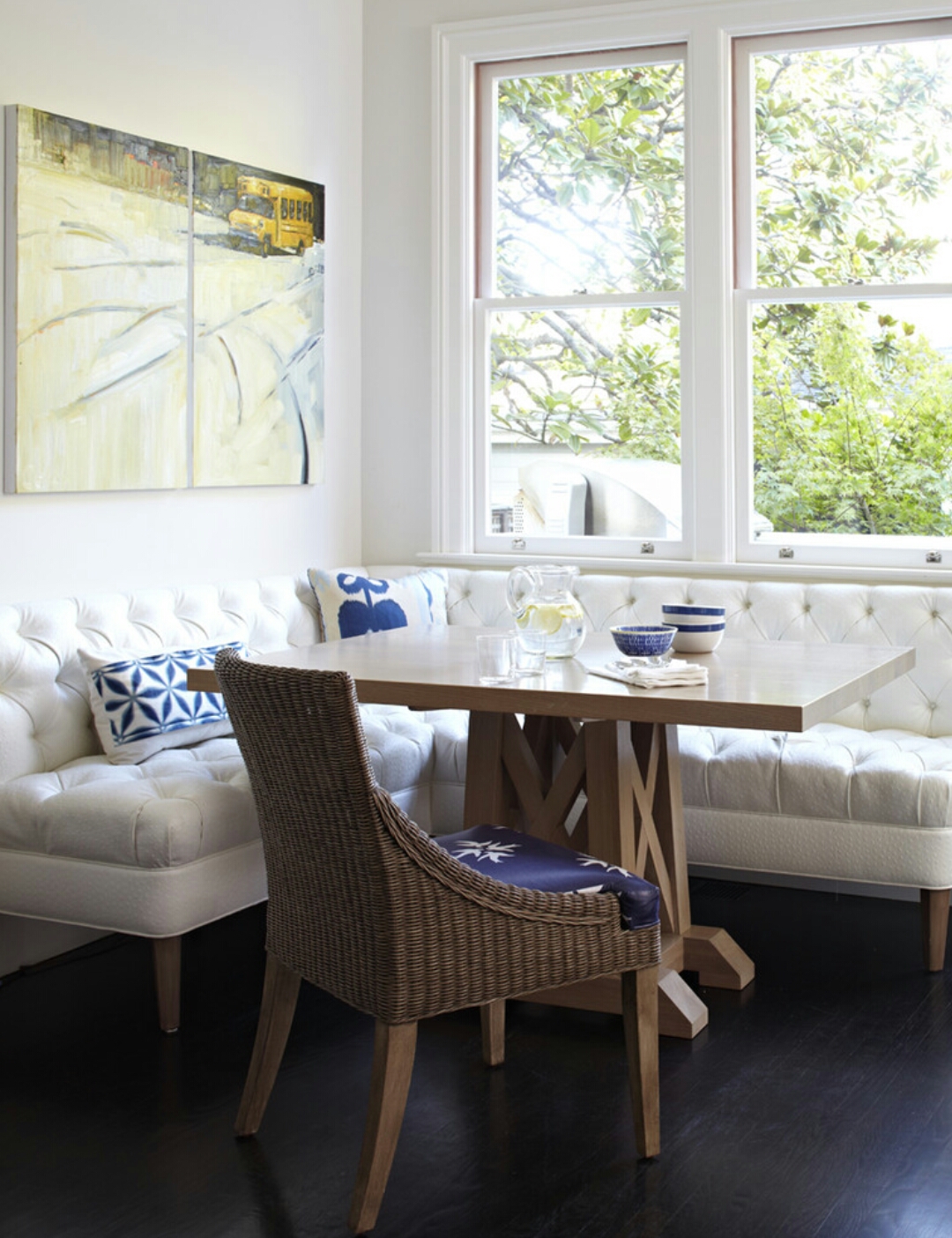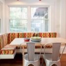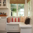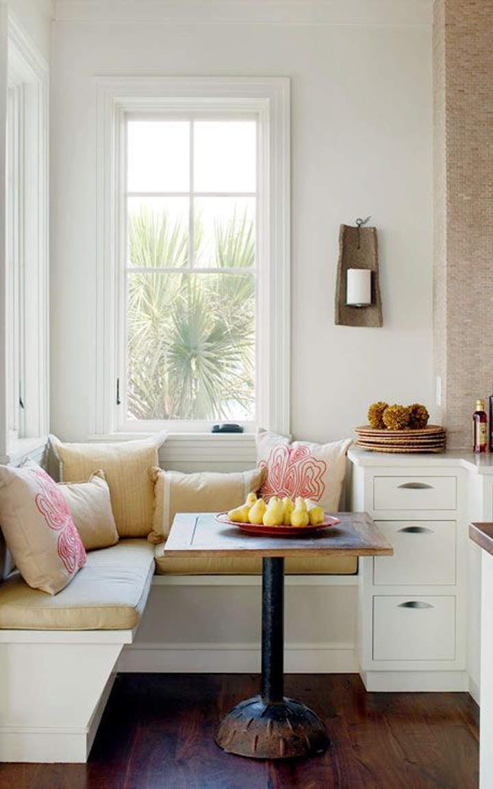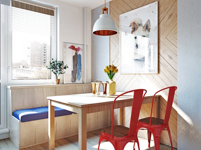 Bay window - a design that is made to order to fill the empty niche under the window. It can be rectangular, semicircular or irregularly shaped. By means of a bay window sofa the free space is filled to the maximum. Upholstery such a model, choose a light, delicate shade.If the kitchen is combined with a balcony, the best arrangement of upholstered furniture with a table is near the window. This arrangement will create a comfortable area for eating.