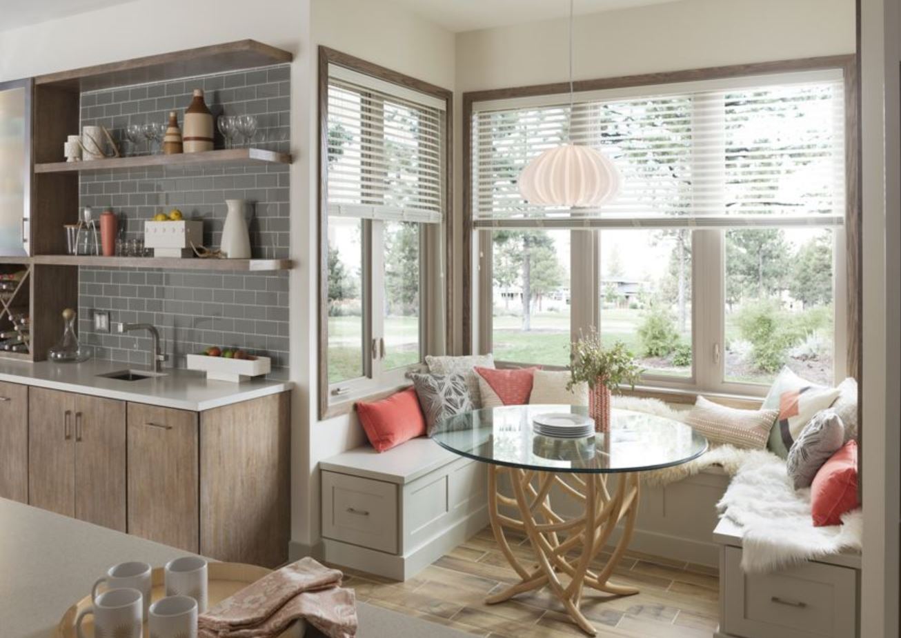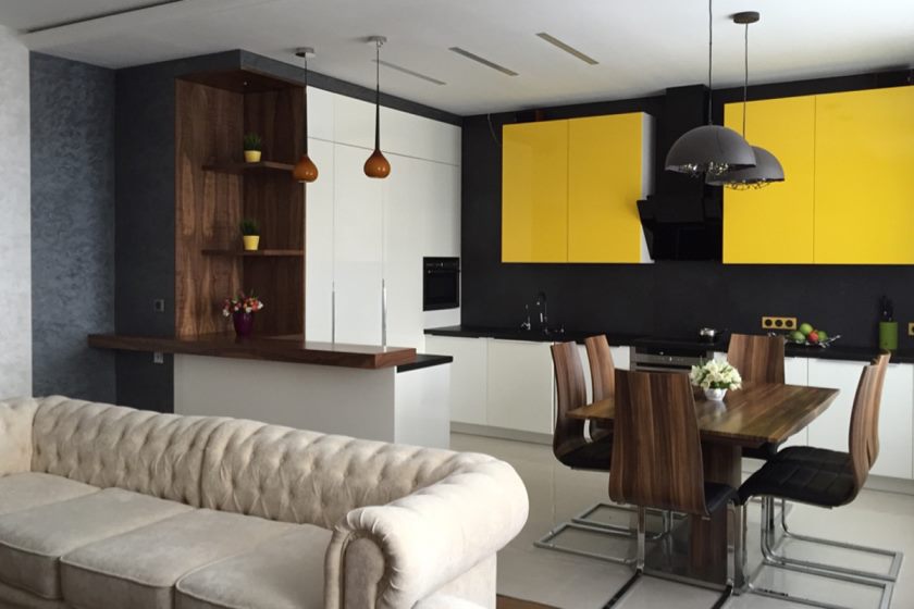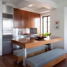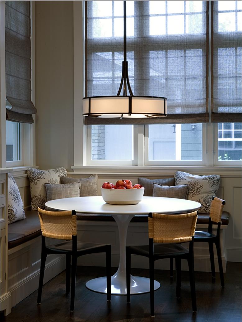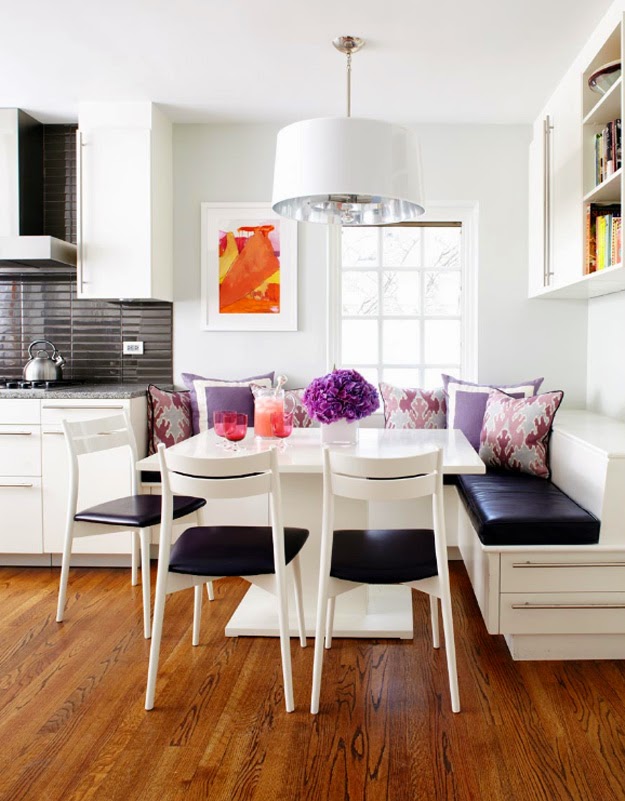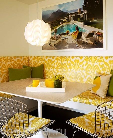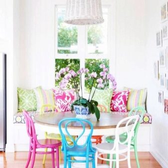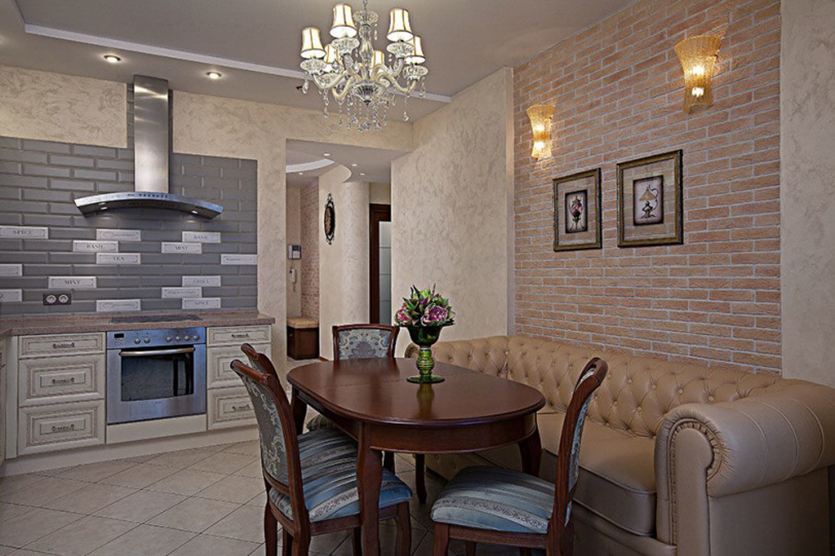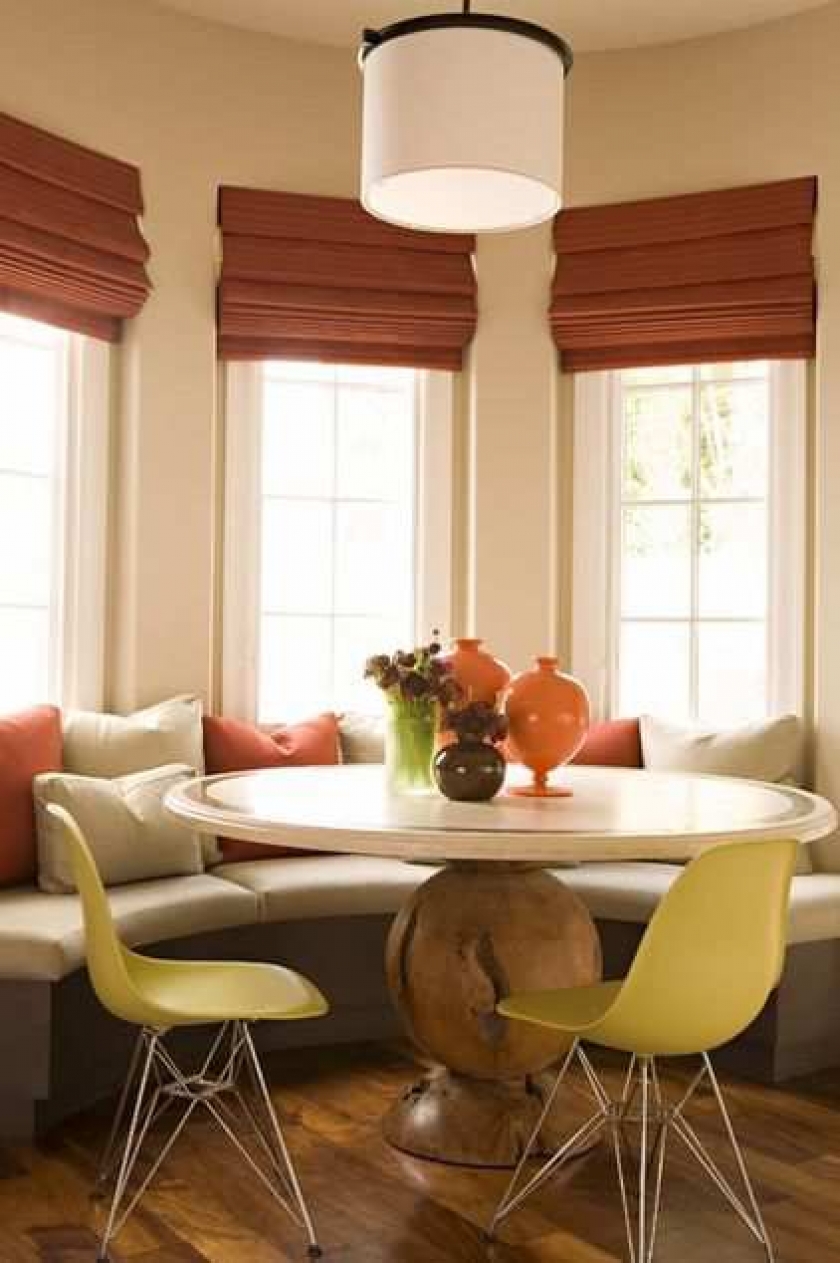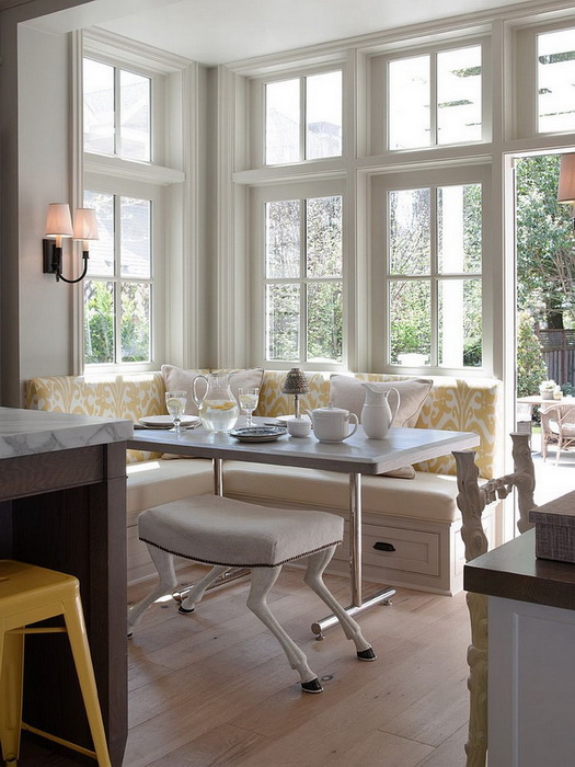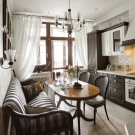 An interesting solution - a soft design, combined with a bar. Unusual and stylish solutions in a modern interior - this is what gives space originality and originality.Many designers advise to place dinner groups near the window, and a place to sit on the windowsill, if it is wide. If you put a soft design by the window, you can admire a beautiful view while eating. This is true if a beautiful landscape is visible from a large window.