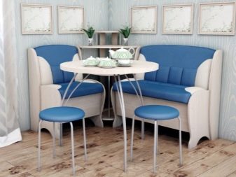 Modern and interesting models of kitchen sofas are a huge variety. Designers recommend to pay attention to the modular design, which is assembled from several parts and acquire the necessary shape when moving components. A soft semicircular sofa, sliding, round, p-shaped, radial, transformer, "eurobook", "accordion" - one of the most compact and functional forms. Models with a high back look appropriate in a classic interior.