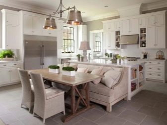 Kitchen sofa in the style of "Provence" - a great solution for the interior, which is dominated by French notes. The best colors for upholstered furniture in this case are lilac, pale pink, powdery, peach, white. Floral prints or absolute monotony are the main features of the Provence style. A modern sofa in this interior must be soft and supplemented with pillows.