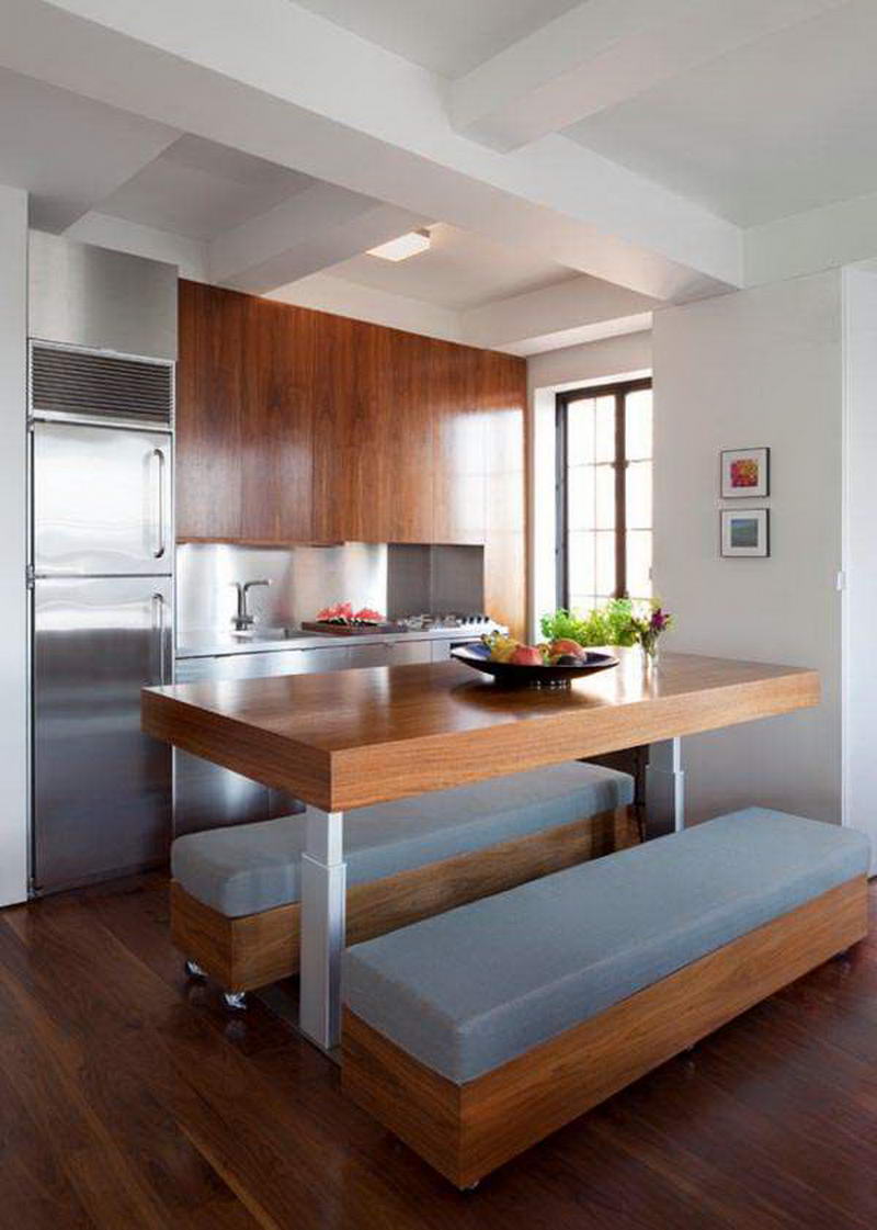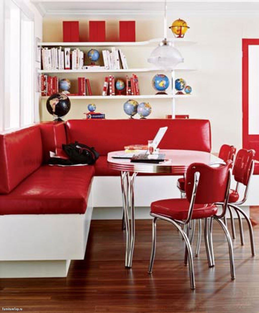 For small kitchens ideal small narrow model.It saves space, has recessed drawers that are being pushed. It is convenient to store various trifles in them. Designs of the direct type are represented by a large variety of dining groups. Direct model fits perfectly along the wall, it can be used to separate the working and dining areas. Choose a straight sofa depending on the size of the room.