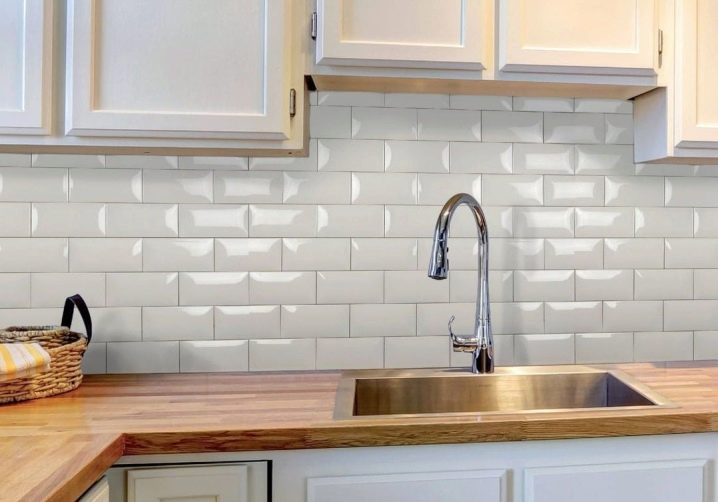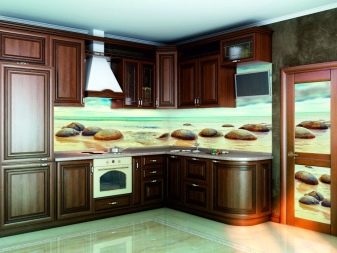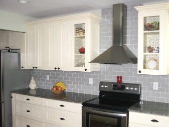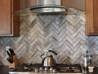These properties have ceramic tiles (including tiled), glass, plastic. There are options for making aprons from natural stone or solid wood, but these materials require very careful maintenance.