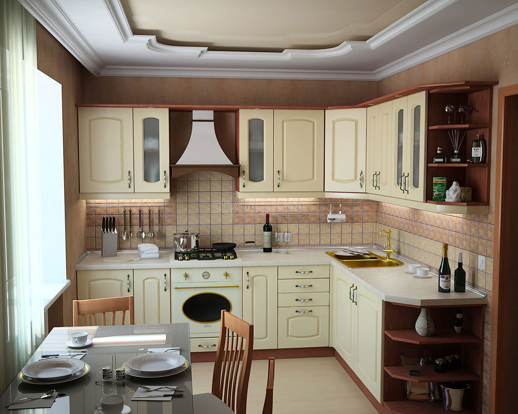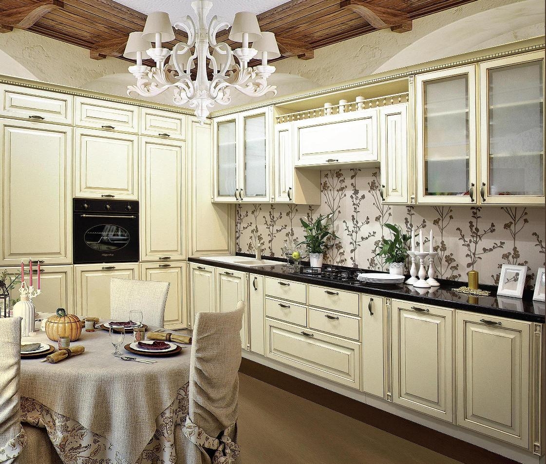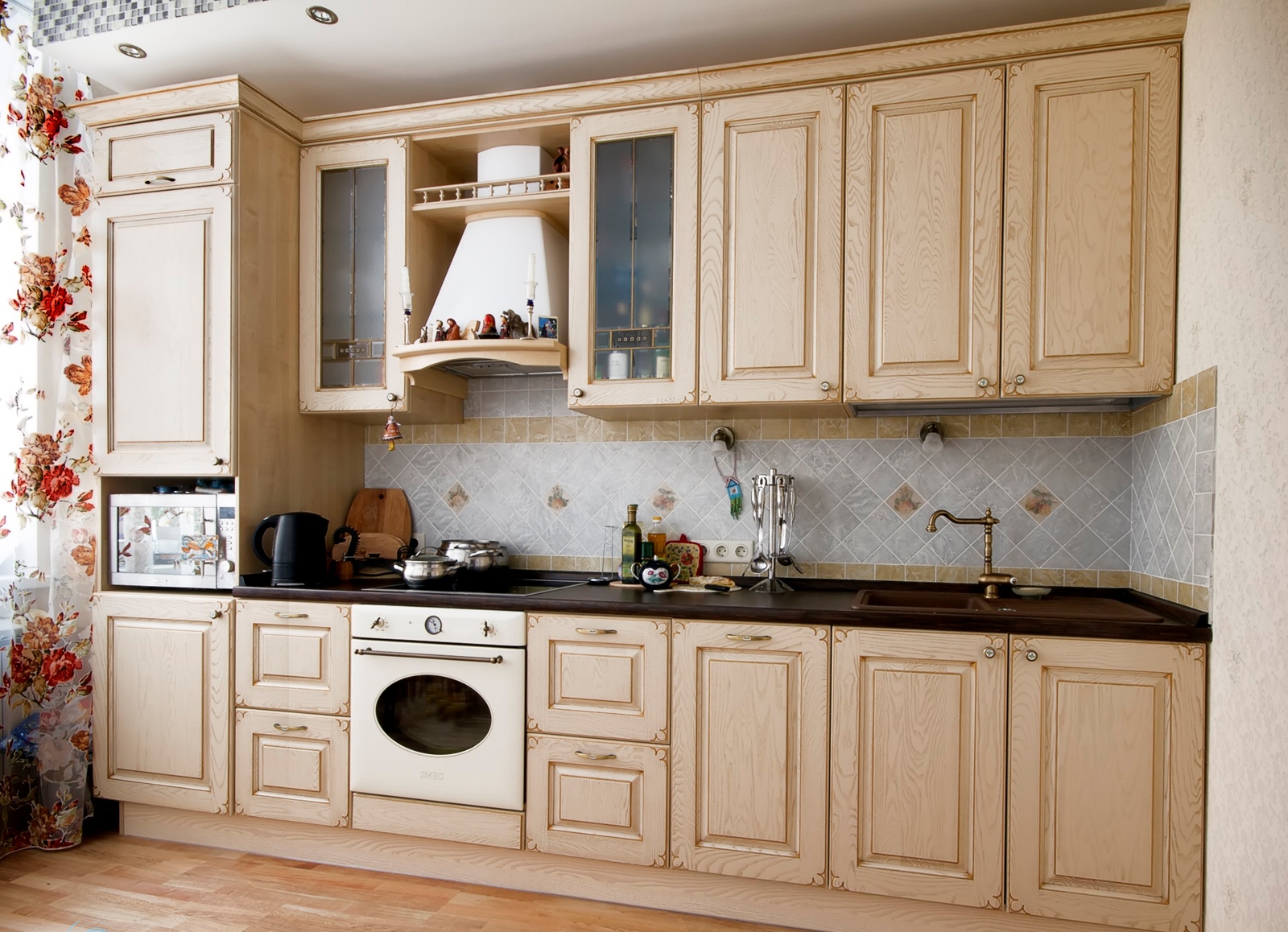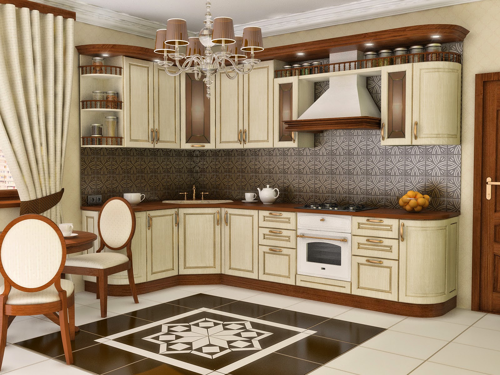 "Classic" kitchen - it is usually set in a row or corner. Classic involves the use of natural materials, but in most cases, wood, for example, is replaced by cheaper chipboard or MDF board.