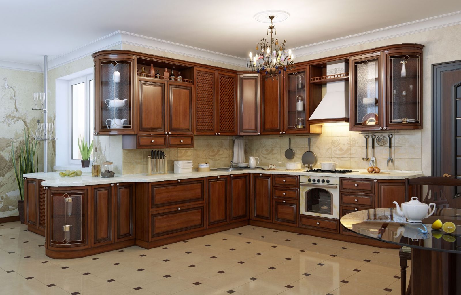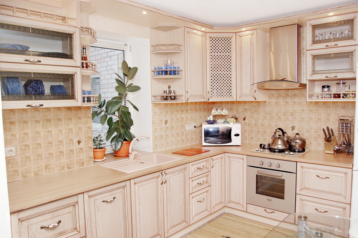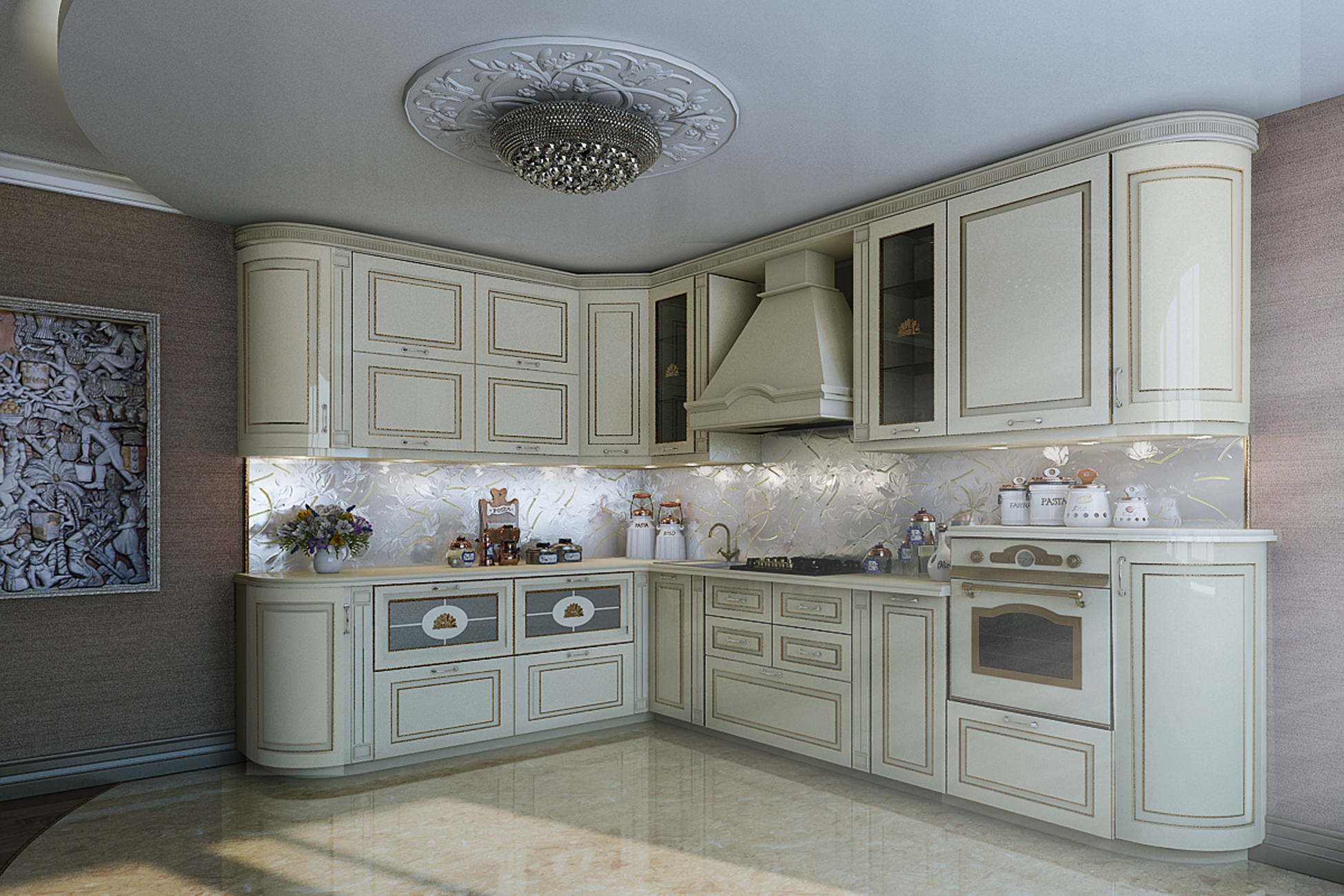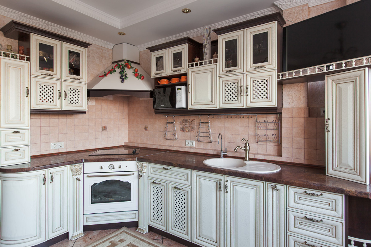 "Classic" kitchen - it is usually set in a row or corner. Classic involves the use of natural materials, but in most cases, wood, for example, is replaced by cheaper chipboard or MDF board.
