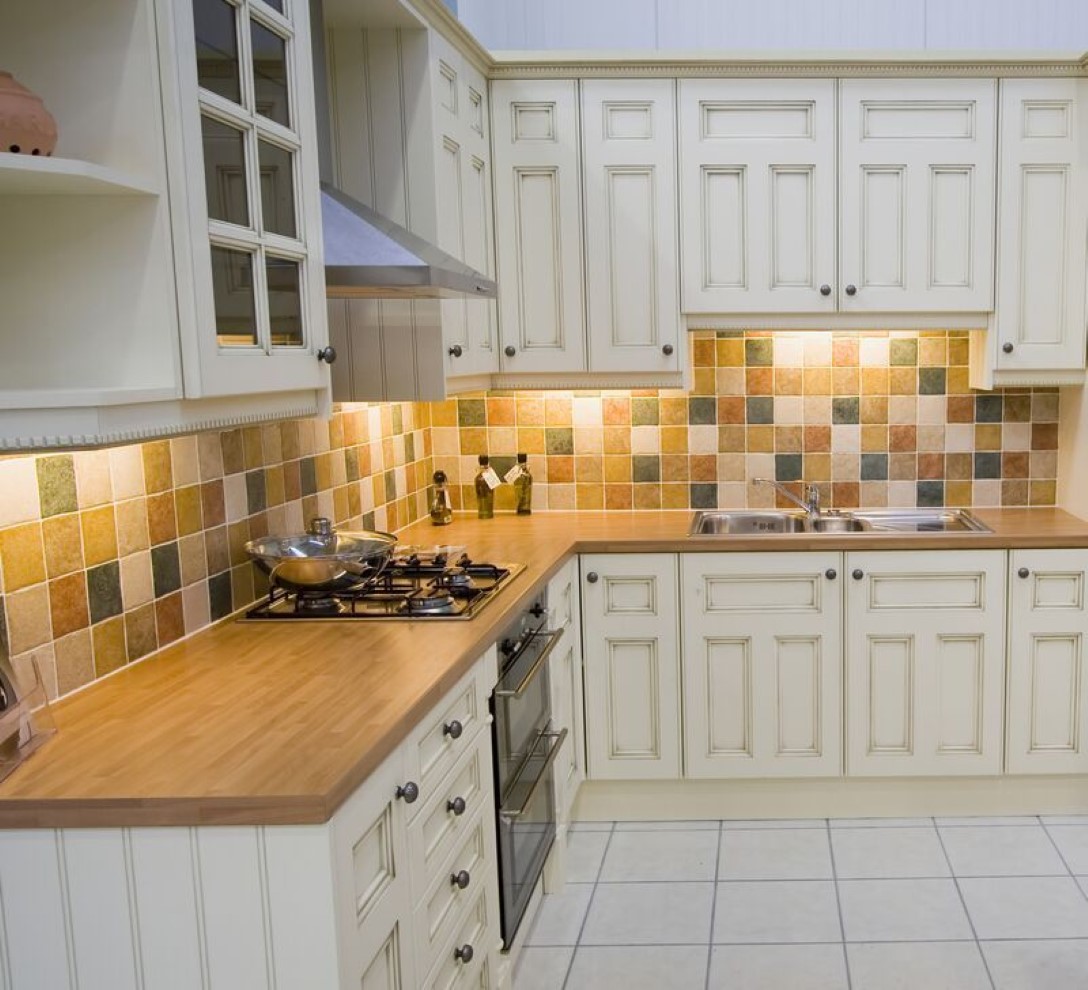 Remember that for a small kitchen a small tile is best suited (for example, a tile with a side of 10 cm square). Large square or rectangular tiles “steal” your space.