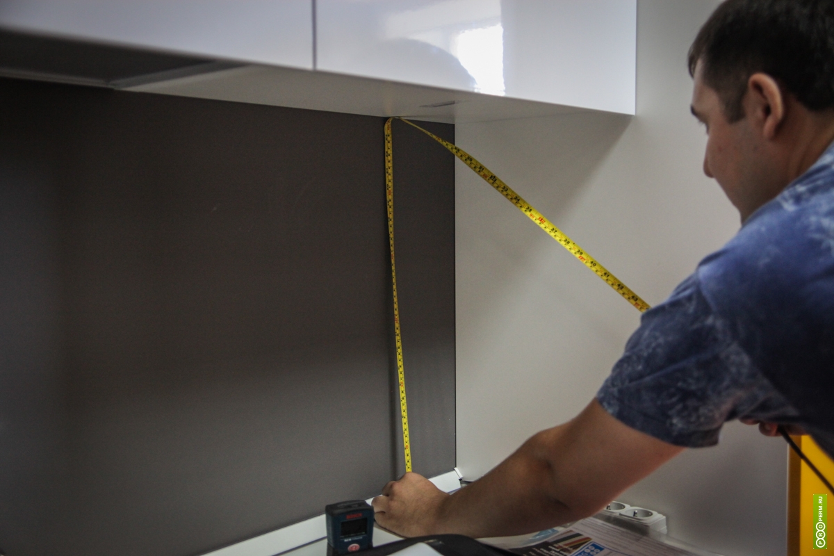 It should be noted that the installation of the panels is carried out so that they "do not go" on the kitchen cupboard. The upper part of the finish should be completely covered with furniture. Upon completion of the installation process, a plinth is installed throughout the panel.