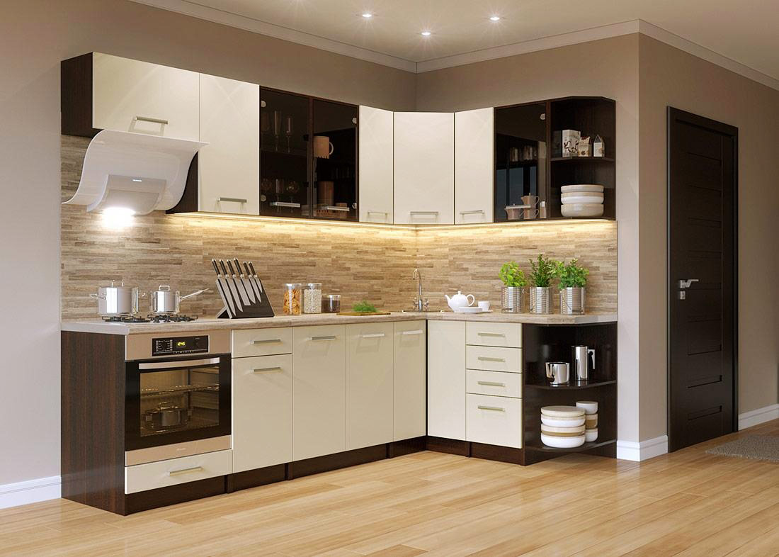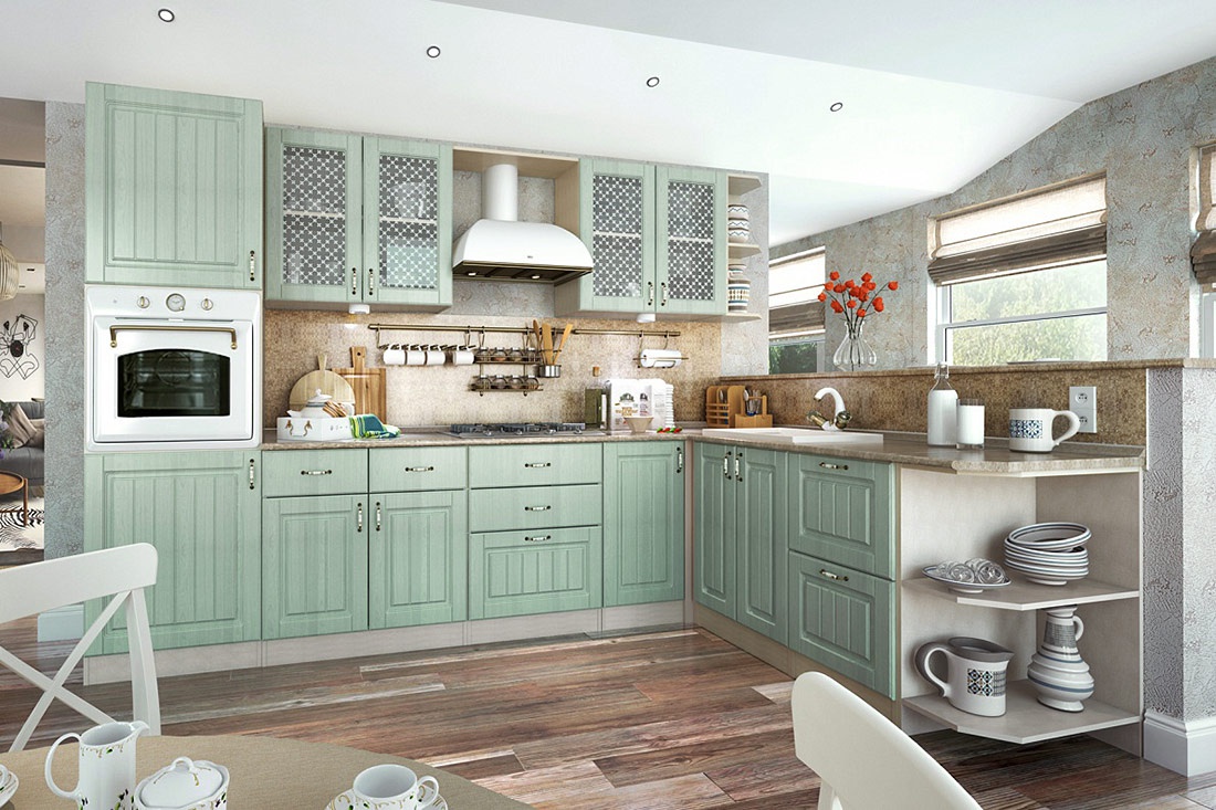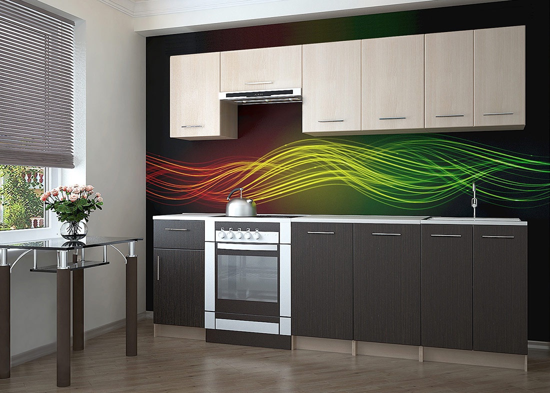 Often, kitchen aprons are used as a decorative surface. Using the panel, you can close those areas between the worktop and cabinets that do not fit into the kitchen interior.