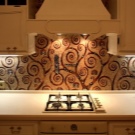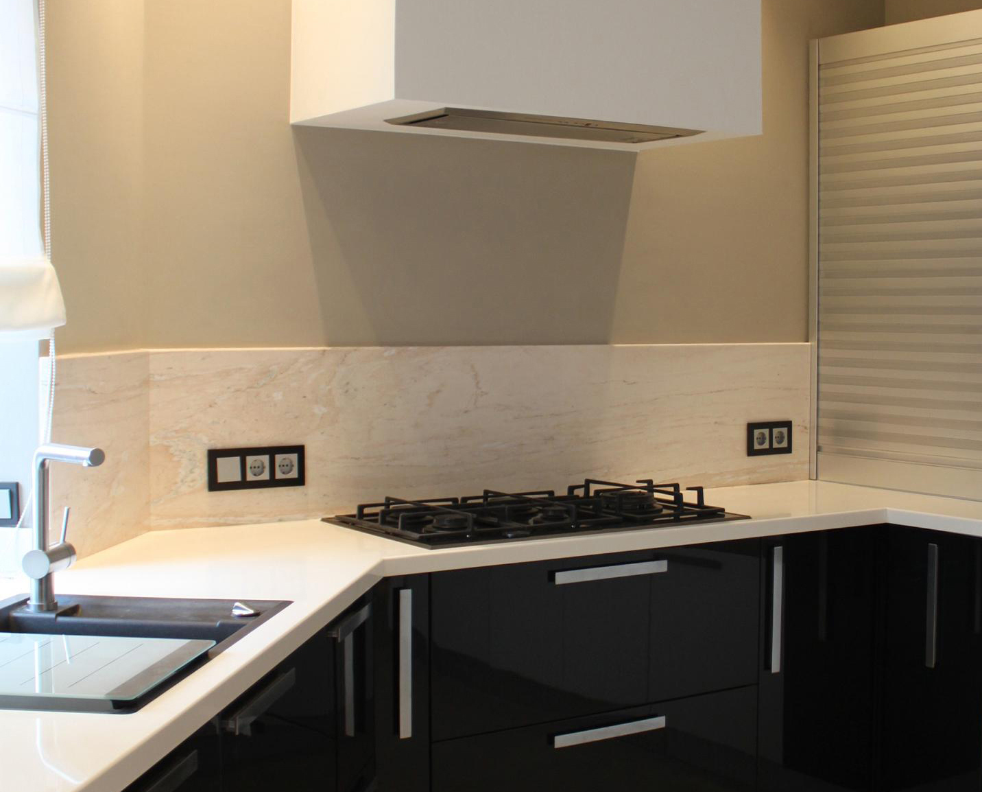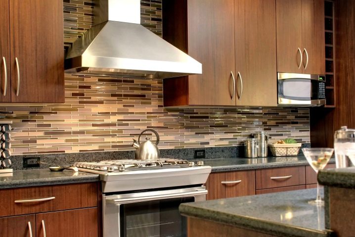 The decoration in the kitchen should not only please the eye, but also be practical. Choosing material for an apron, you need to pay attention to its size, quality, aesthetic beauty and value. The distance above the work surface, i.e., the worktop and hanging cabinets of the headset, should be optimal to protect the wall from hot steam, oily splashes, grease and other contaminants. As a rule, finishing is carried out along the entire wall, but quite often it is limited to separate inserts, for example, in the washing zone, the slab.