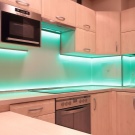 This model exhibits excellent resistance to moisture, high temperatures. Want to get an apron at an affordable price without seams and joints - take into account the system of chipboard!