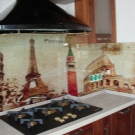 The product perfectly "gets on" with a cooking surface, transfers any temperature drops, does not let moisture through. You can decorate glass with pictures of large flowers, images of birds, animals, vintage items, fruits or vegetables, and sweets.