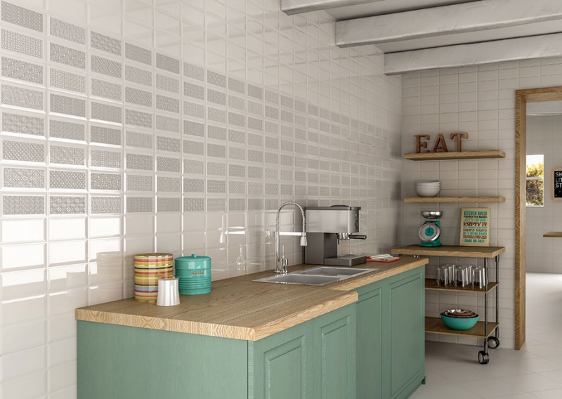 Try to choose a tile with a glossy surface for ease of care for it. Its brilliant surface will reflect the light that will visually expand the kitchen area. If you are not satisfied with small square meters, you can use volumetric decors, select embossed tile patterns, for example, with a 3d effect. For any interior a beige-brown color will turn out to be a win-win, no matter what style surrounds you (classic, kitsch, vintage or art nouveau).