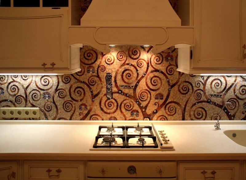 The sophisticated design of a kitchen apron with a mosaic is a trend, consists of contrasting shades, non-trivial colors. The mosaic will give a special charm to the kitchen, tenderness and elegance. When installing such a structure, glue is used, a grout that takes most of the time to “remove” the seams. It is also necessary to observe the sequence when laying the mosaic.