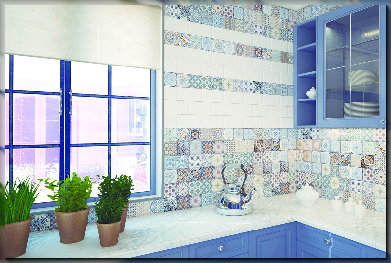 The peculiarity of the tile is that it easily imitates other materials: stone, wood, glass. A popular ornament will be watercolor drawing or patterns with divorces. Small impurities and stains are practically invisible with them. When laying tile pay attention to problem areas, seams. Light grout will eventually lose its original color. It is important to use only high-quality materials with dirt-repellent, moisture-resistant components, for example, like an epoxy grout.